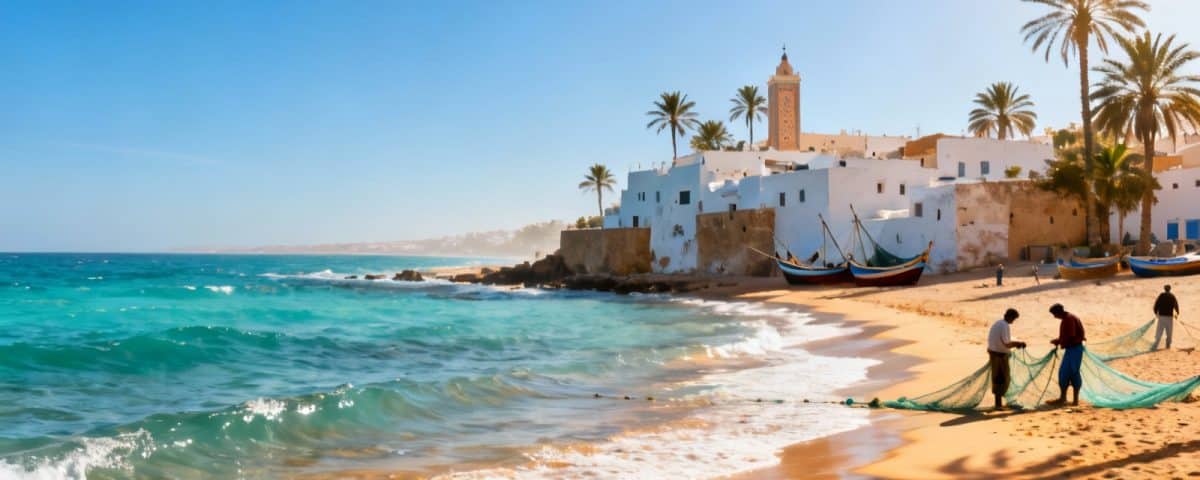 Le climat atlantique marocain présente des nuances selon les saisons. Les mois de mai à octobre offrent les conditions les plus favorables pour les activités balnéaires. L’eau atteint sa température maximale en septembre-octobre, période idéale pour la baignade. L’été peut être venteux sur la côte atlantique, particulièrement à Essaouira.